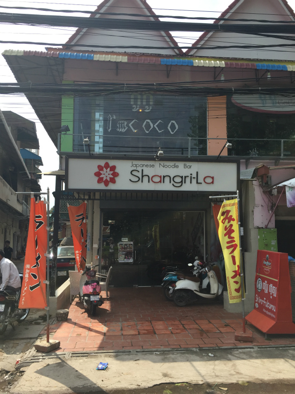 昼食をと思って街を歩いていると、"Japanese Noodle Bar Shangri-La"という店を見つけた。「ラーメン」と書かれた幟があり、あまり期待せずに店に入ると、実際は日本人が経営する本格的な店で、ラーメンも餃子も白米も日本のそれだった。少なくとも3年前にモスクワにいたときはこんな料理を出す店は皆無だったから、よほどモスクワよりプノンペンの方が日本人にとって住み心地が良い、と思った。