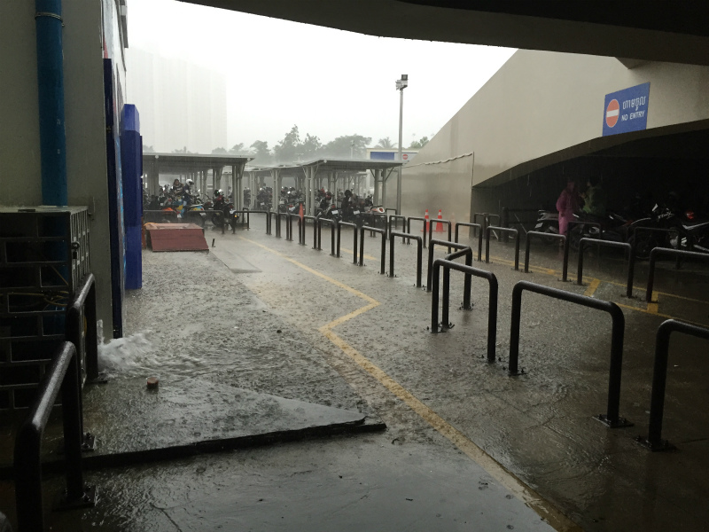 トゥクトゥクのドライバーには、宿ではなくイオンモールに向かわせた。案の定、その道中で雨はスコールと化し、水はけの良くない道に大きな水溜まりを作った。イオンの目の前でトゥクトゥクを降り、バイクの駐車場の辺り、屋根のあるところで雨が上がるのを待ったが、待てども雨足が弱まる気配は一向になく、痺れを切らして全速力で店内目がけてスコールの中を駆け抜けた。