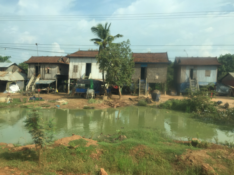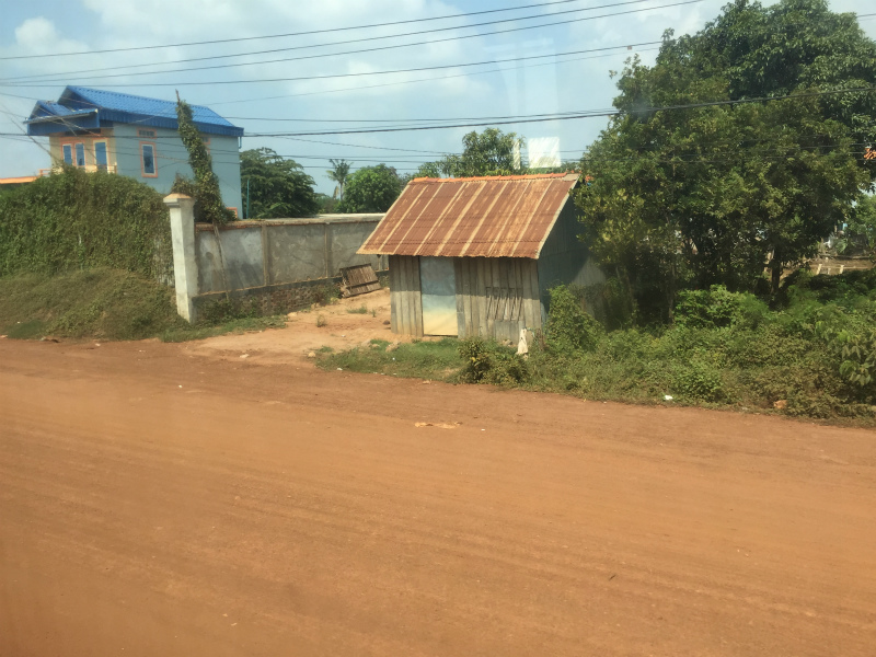 1号線といえども道路は整備途上のようで、未舗装の区間すら多く存在した。そして沿道の集落には高床の前時代的な住居が並び、「東南アジアの最貧国」という事実が頭をよぎった一方、そんな家々の前でスマホで遊ぶ子供たちもいて、アンバランスさを感じた。