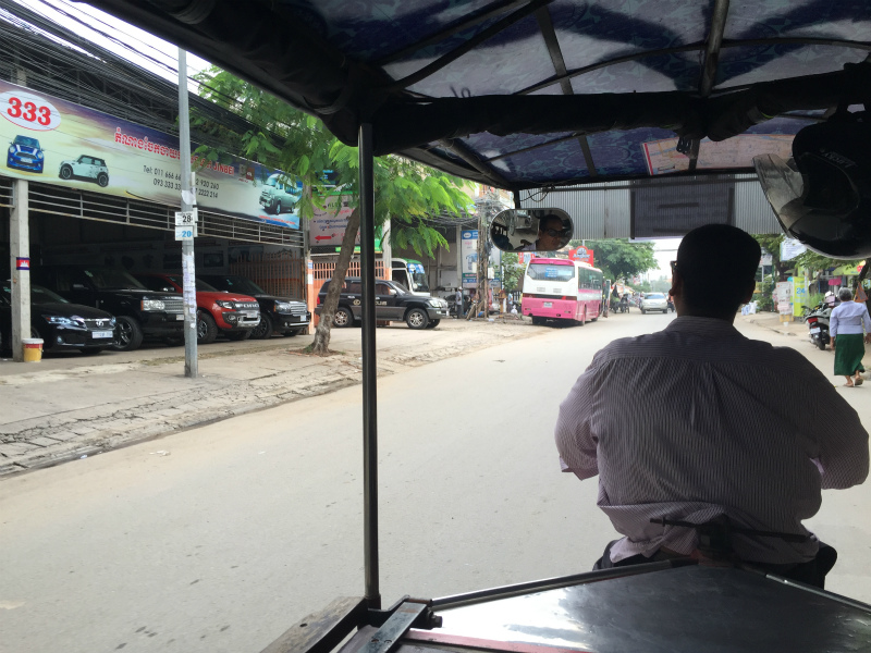 朝食とチェックアウトを済ませて外に出ると、一斉にトゥクトゥクのドライバーが群がってきた。そのうちの一人に声を掛け、料金交渉しようとすると、ドライバーは「これを見ろ」とでも言わんばかりに、いかにもホテル公認のような体裁の料金表を指差した。もちろんホテルが関知しているわけがないのだが、一見それらしく出来ていて、当然高い。そんな値段なら乗らないとリアカーを降りかけると交渉が始まり、最終的にはそれなりの値段に落ち着いた。