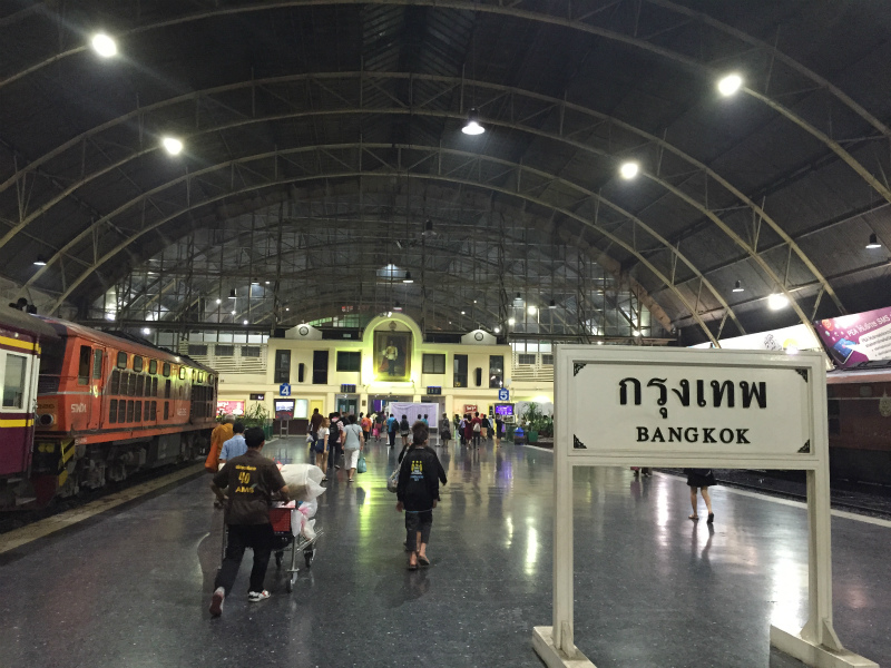 結局、バンコク・フアランポーン駅には45分遅れて到着した。最後の1区間があまりにもどかしく、焦らされた分、"BANGKOK"の駅名標を見たときは解脱感が大きかった。