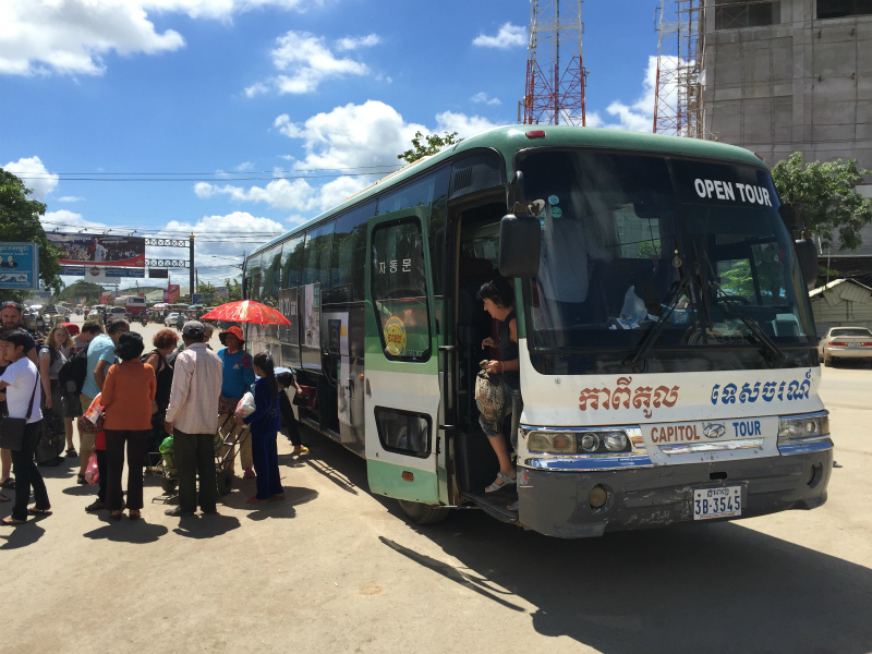 ホテルの前に泊まっていたトゥクトゥクに1ドル紙幣を渡して、昨日チケットを買ったバス会社へやって来た。