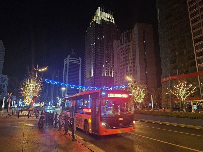市内と開発区とを結ぶ赤い車体の2001路バスは朝5時から運行しており、そこそこ早い列車や飛行機に乗りたいときにも使えます。