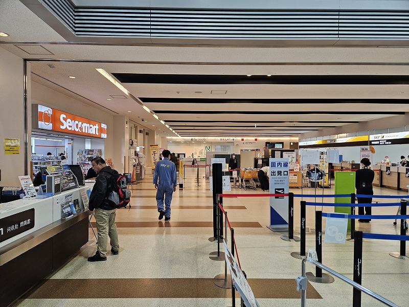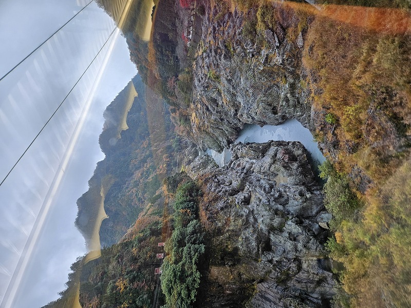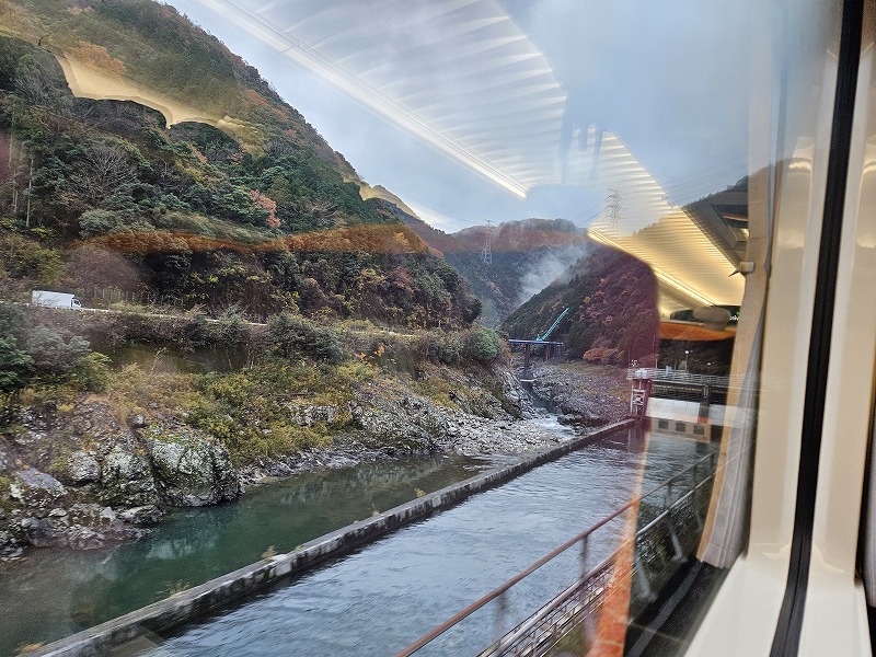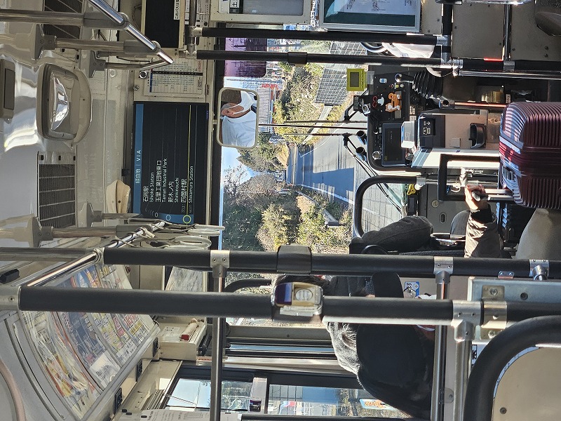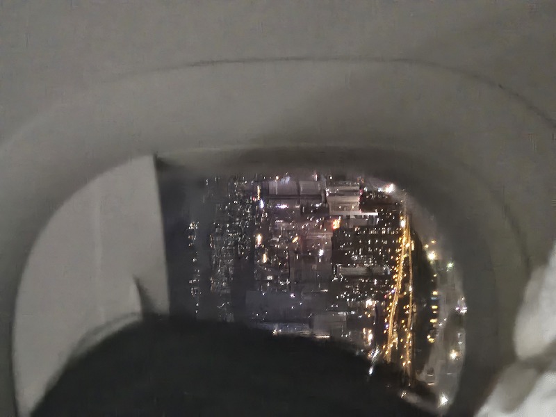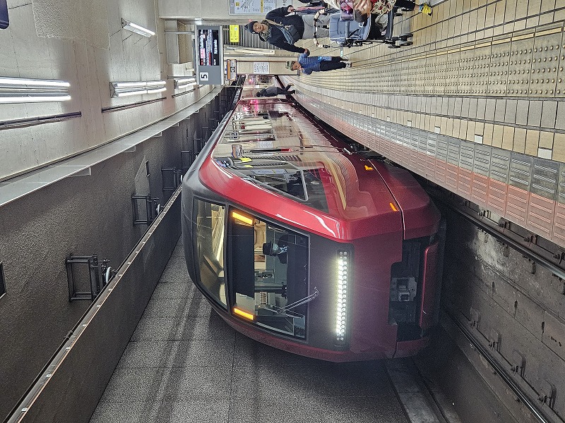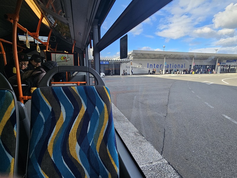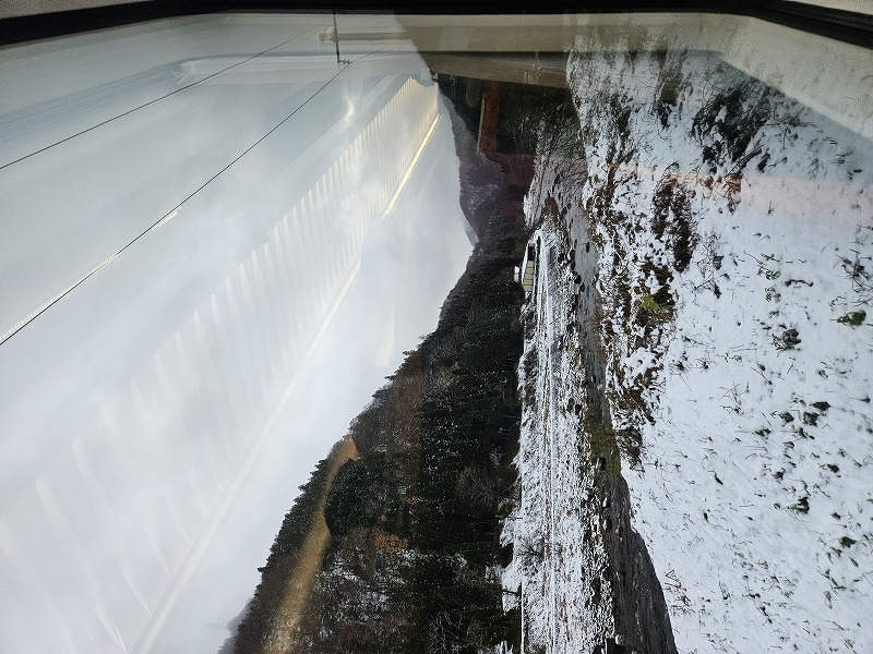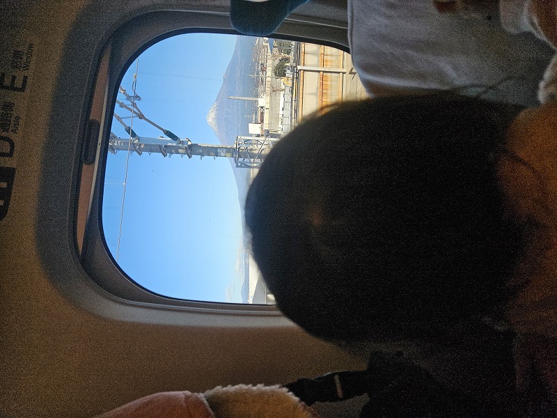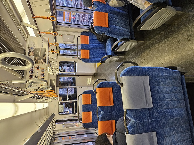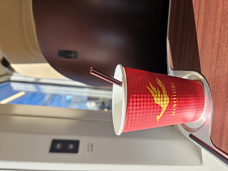 帰りの席は進行方向壁側の三列席真ん中で窮屈なのを覚悟していましたが、写真の通りガラスドアの目の前で開放感があり、足元も狭くなく、むしろ当たりだったと思います。
