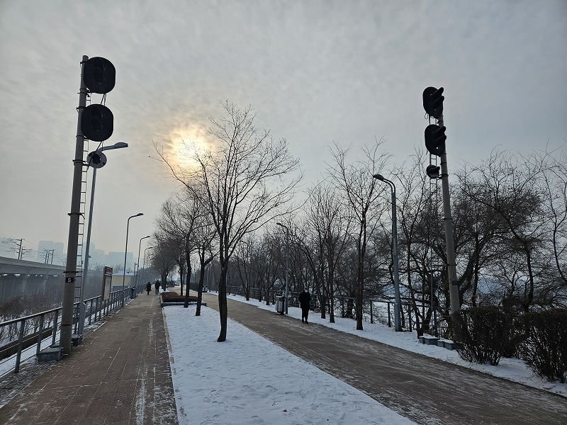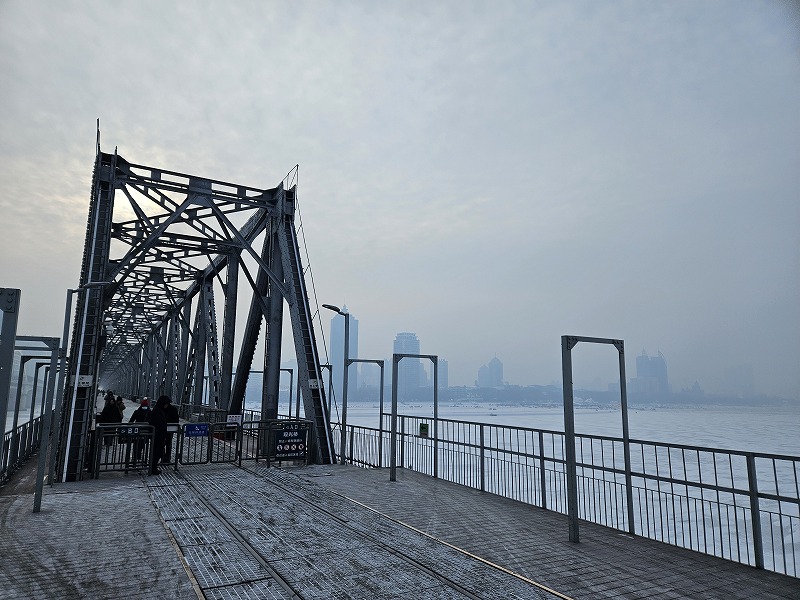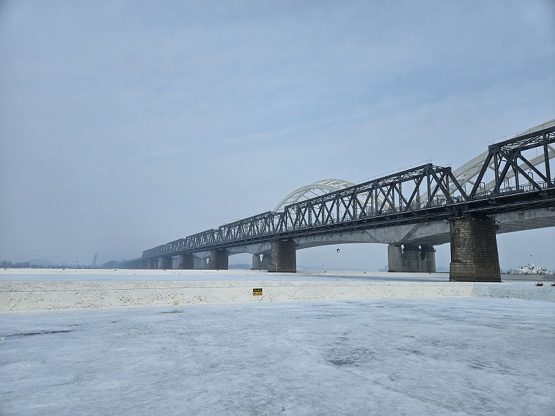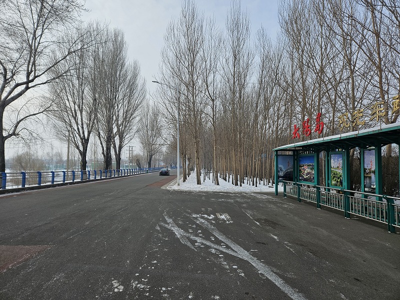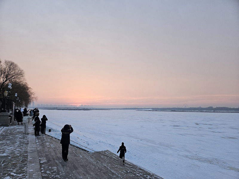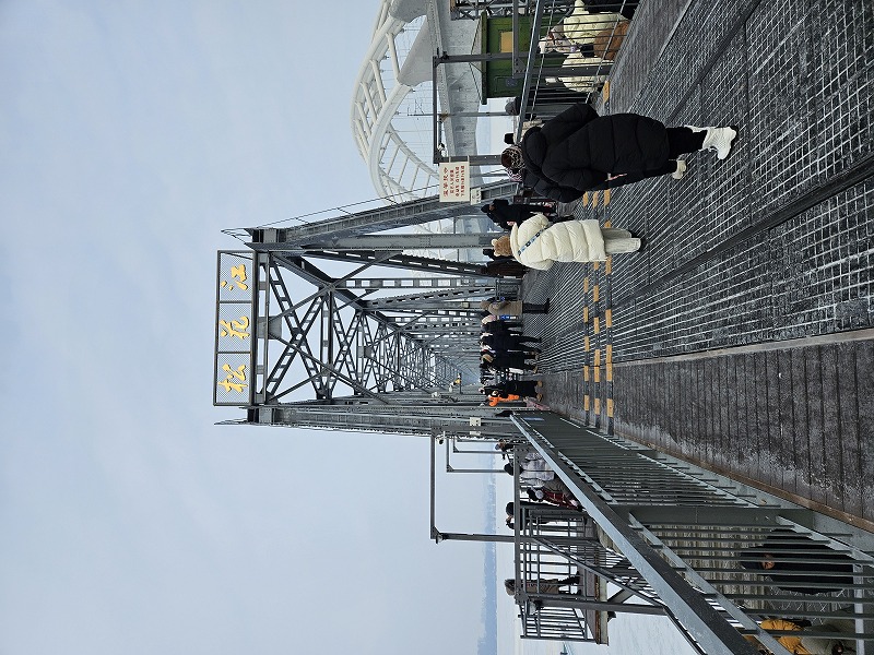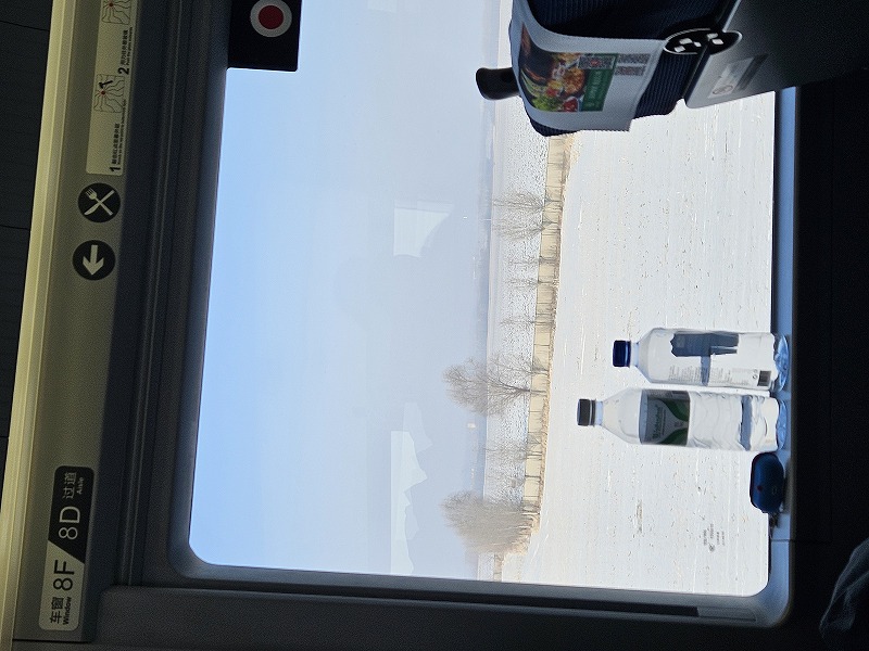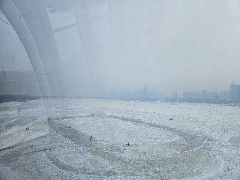展望台からは、真っ白な湖面の松花湖が望めました。