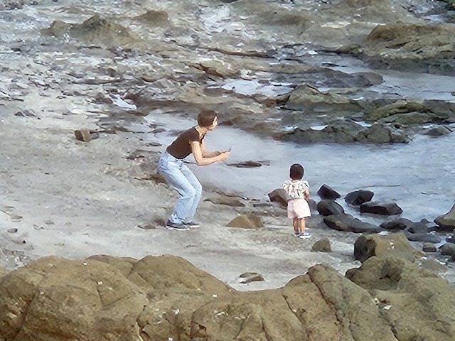 この対岸は北朝鮮で、遠くに湖畔で何かをしている人々の姿が見えました。